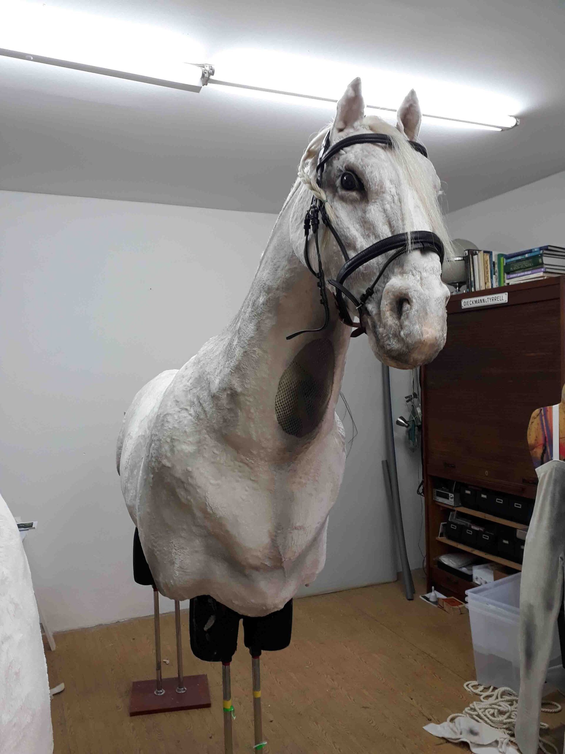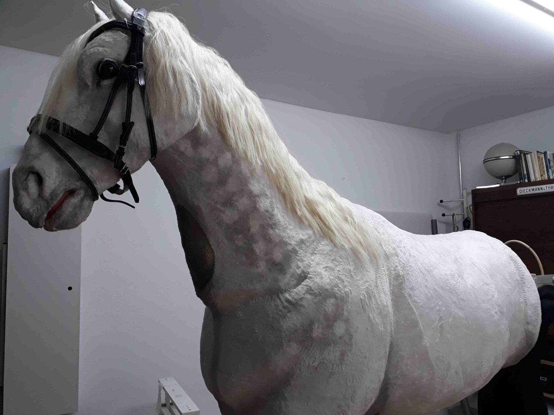 The horse was commissioned by Komische Oper Berlin for the production "Köng Blaubart" (Trailer).